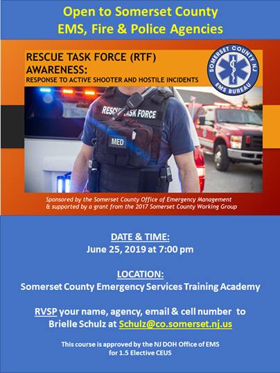 The last scheduled RTF Awareness course is taking place June 25th at 7pm at ESTA. To date over 200 first responders have attended this program. This is the last scheduled awareness level course for the foreseeable future so please push it out to your members/staff. There is no cost to attend this program.