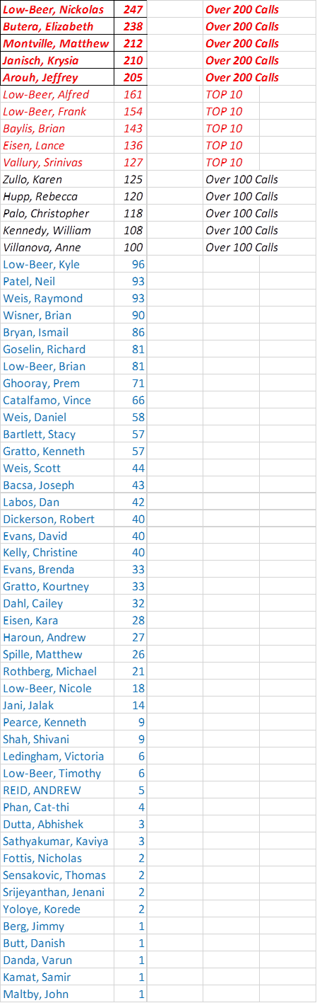 * LOSAP data as per total calls only. (Other info is included in LOSAP