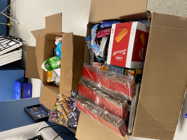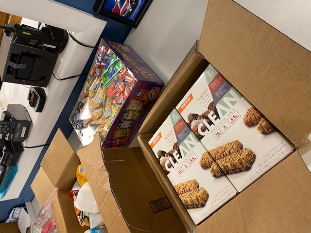 The protein bars and some of the other goodies were from Pat Meier. a former squad member, and her husband, who dropped them off yesterday.