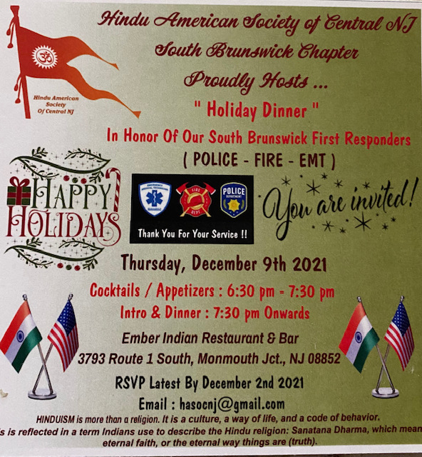 The Hindu American Society of Central NJ is hosting a Holiday Dinner on Thursday December 9th.