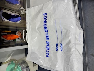7. Often I get calls from Patients and families asking for patients’ lost belongings. I left few bags in A63. If you have a patient who can’t take care of his/her cellphone and Drivers license or any other small items you can use these bags and hand it over to the hospital.